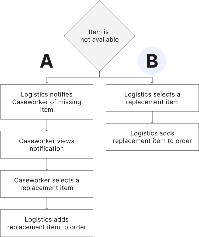 Encourages caseworkers to explore other options when the first choice is out of stock