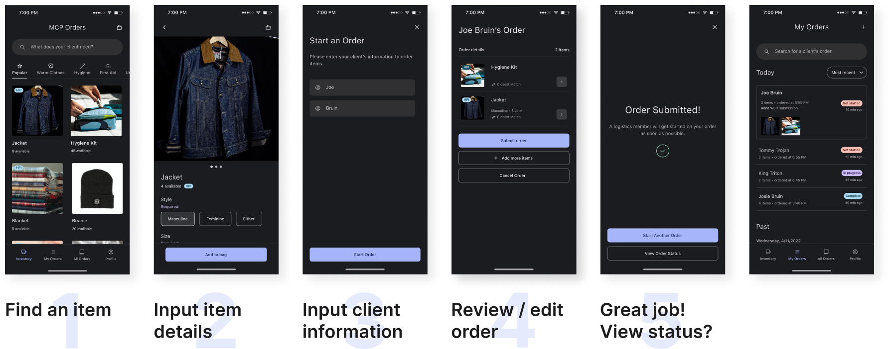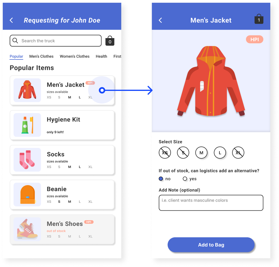 A mobile ordering application that assists clinic workers with requesting items for their clients and fulfilling these orders.